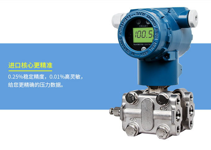 SIN-3051系列壓力變送器利用差動電容檢測的原理,當膜片兩側壓力不一致時,使容室中測量膜片產生位移,其位移量與壓力差成正比,通過電路處理將電容變化量轉換成4~20mA的二線制電流或電壓信號,可帶上458協議或者HART通訊協議功能。該變送器具有堅固抗振,量程,零點和阻尼現場連續可調。