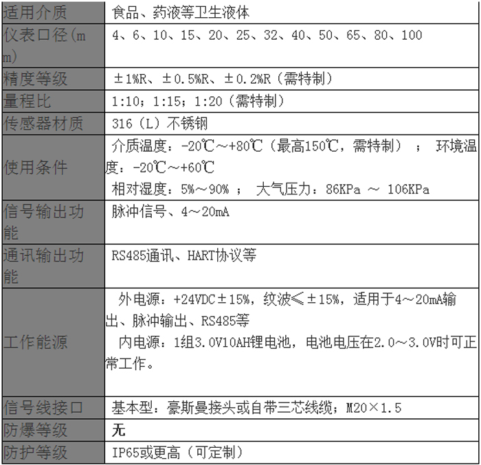 LWS-SIN系列衛(wèi)生渦輪流量計(jì)是一種廣泛應(yīng)用于制藥、食品、飲料等行業(yè),作為計(jì)量、配料、控制、成品灌裝等用途。流量計(jì)量?jī)x表,該儀表外殼是用不繡(316L)制成,機(jī)芯部分使用特種材質(zhì),具有良好的防腐蝕、防銹能力。整表結(jié)構(gòu)突破傳統(tǒng)工藝,采用良好的防腐能力。大大提高了儀表的準(zhǔn)確度和重復(fù)性。專門為制藥、飲料行業(yè)設(shè)計(jì),采用快裝式連接結(jié)構(gòu),方便清洗。LWS系列衛(wèi)生渦輪流量計(jì)已達(dá)到同類產(chǎn)品國(guó)際水準(zhǔn),是衛(wèi)生行業(yè)理想儀表。
