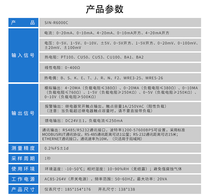 SIN-R6000C系列彩色無紙記錄儀48路(萬能輸入(可組態選擇輸入:標準電壓、標準電流、熱電偶、熱電阻、頻率、毫伏等)。可帶18路報警輸出,12個變送輸出,RS232/485通訊接口,以太網接口,微型打印機接口和USB接口,SD卡插座;可提供傳感器配電;具有強大的顯示功能,實時曲線顯示,歷史曲線追憶,棒圖顯示,報警列表顯示。人性化的外觀設計、良好的功能體現、可靠的硬件品質、精湛的制造工藝,使SIN-R6000C具有更高的性能價格比。